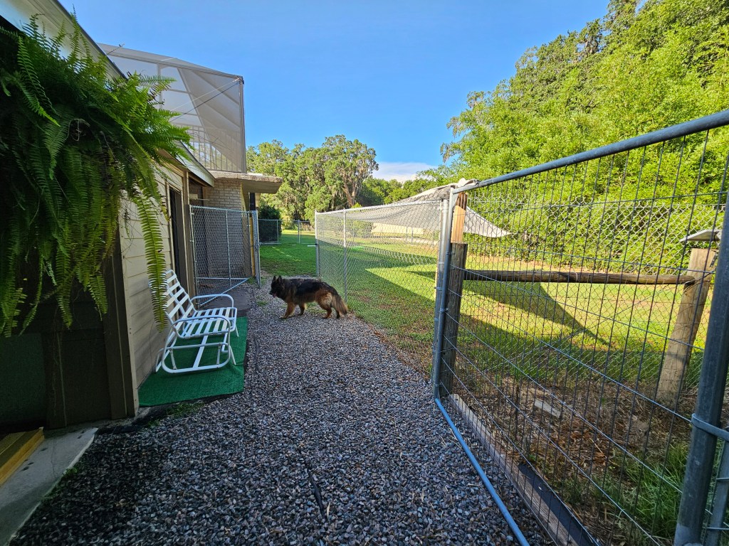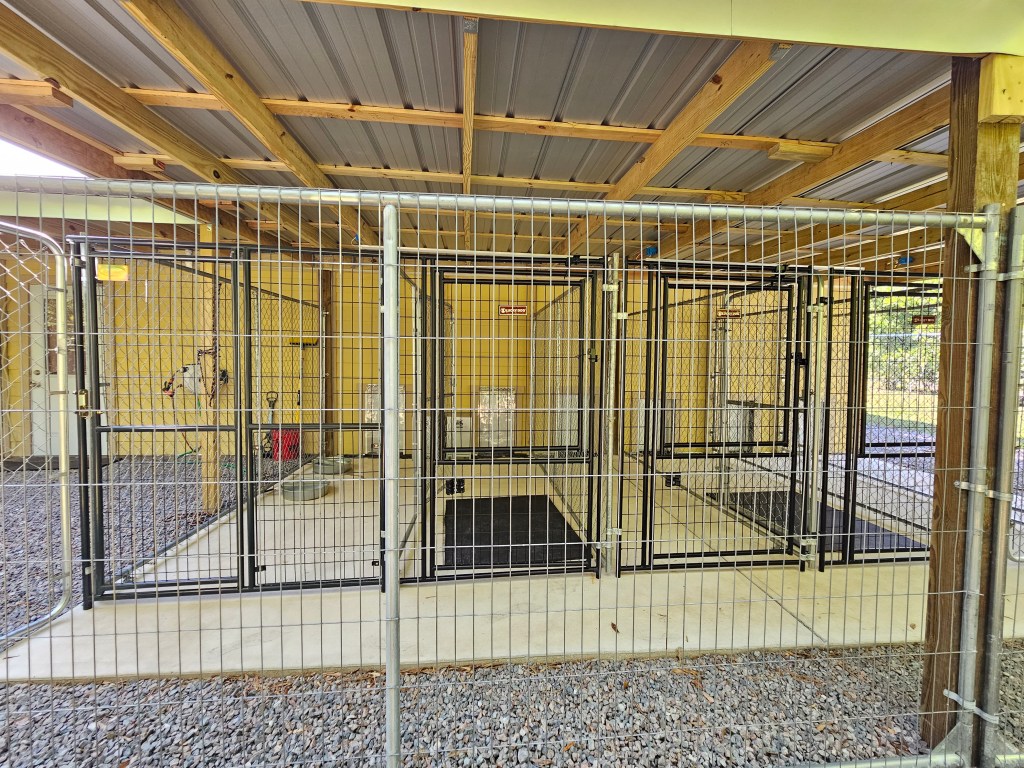 Air-Conditioned and thermostatic controlled Kennel with access to main play yard several times daily included in boarding fee.