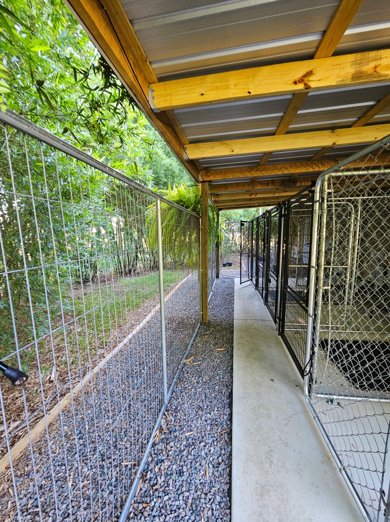Air-Conditioned and thermostatic controlled Kennel with access to secluded private bamboo play yard several times daily included in boarding fee.